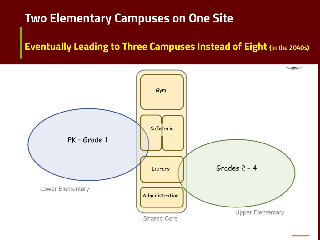 - Proposed idea is to eventually have 3 attendance zones for elementary schools around the city, and using partner schools to put this plan into place earlier.